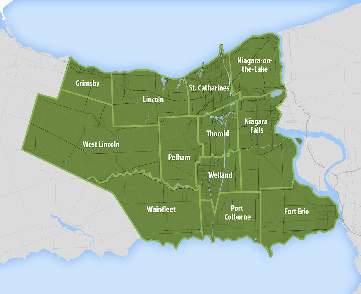 Niagara is located in a part of southern Ontario known as the Golden Horseshoe, which also includes the Greater Toronto Area. The Golden Horseshoe wraps around the western end of Lake Ontario and is home to 9 million people. Niagara is situated at the southern end of the Golden Horseshoe - between Lake Ontario to the north and Lake Erie to the south. Niagara is also bordered by the Niagara River with its spectacular Niagara Falls waterfalls.